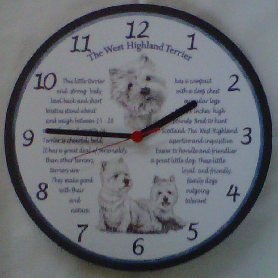 This beautiful wooden clock with images of westie dogs and a description will make a very suitable gift for those that have a westie of their own.
