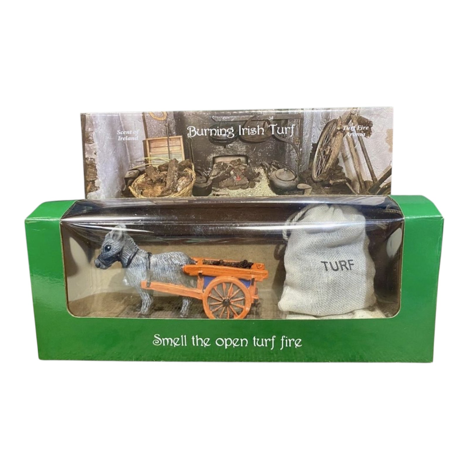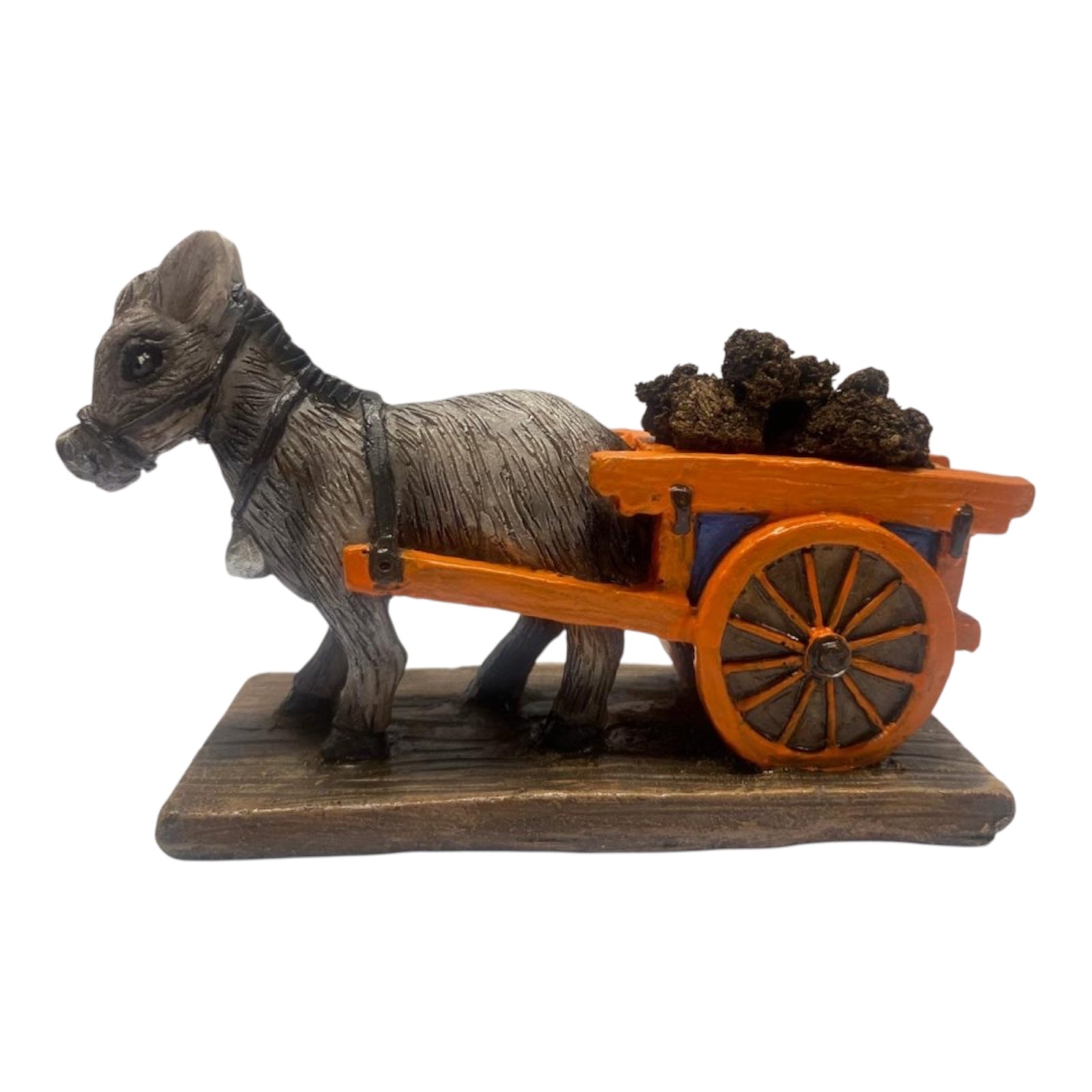 These turf sods are easy to light, and the donkey and cart make a lovely ornament to adorn your fireplace or cabinet.